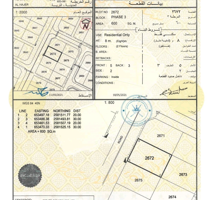 فرصة بحيم العامرات أرض وسطية جاهزة للبناء وسط المنازل
