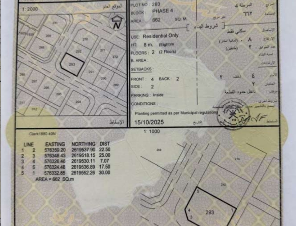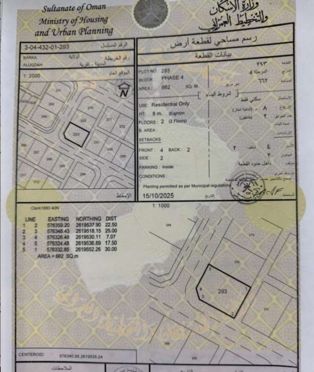 رقم الأرض : 293