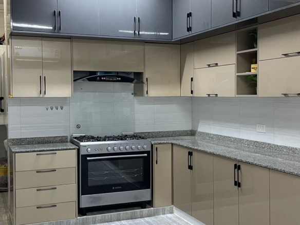 * مطبخ واسع مجهز بالكامل مع مخزن (باب خارجي من الصالة)