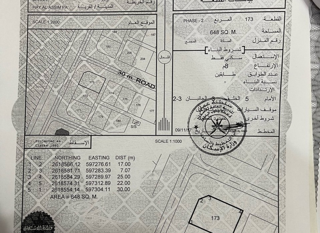 كورنر عرضية أرض للبيع بحي عاصم بركاء