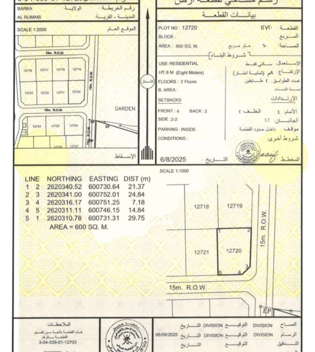 مميزات الأرض و الخدمات: بالقرب من طريق الباطنة الساحلي ومنازل قائمة ، مناسبة لبناء توين فيلا.