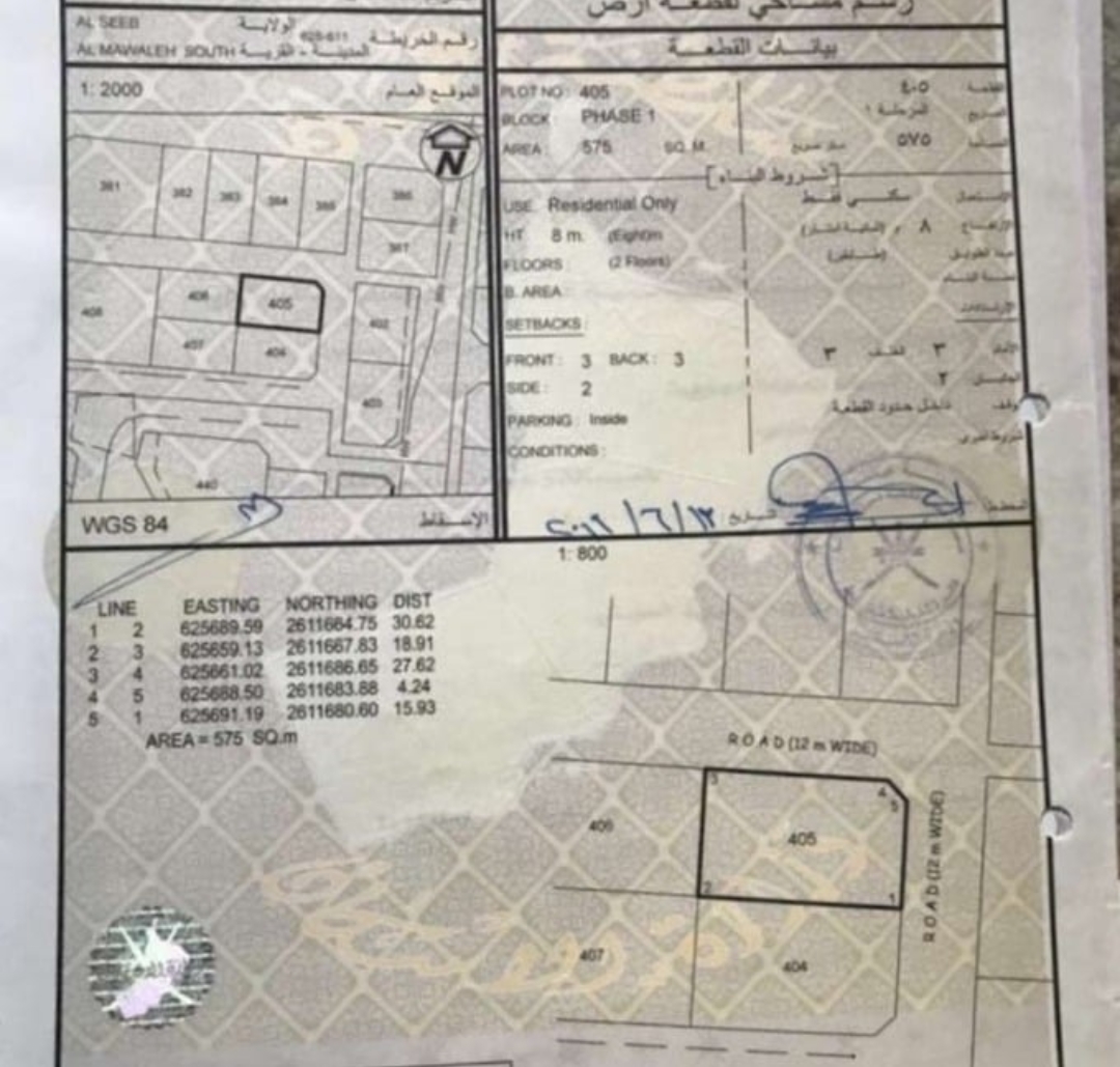 10دقائق فقط عن بوشر أرض زاوية للبيع بمرتفعات العامرات