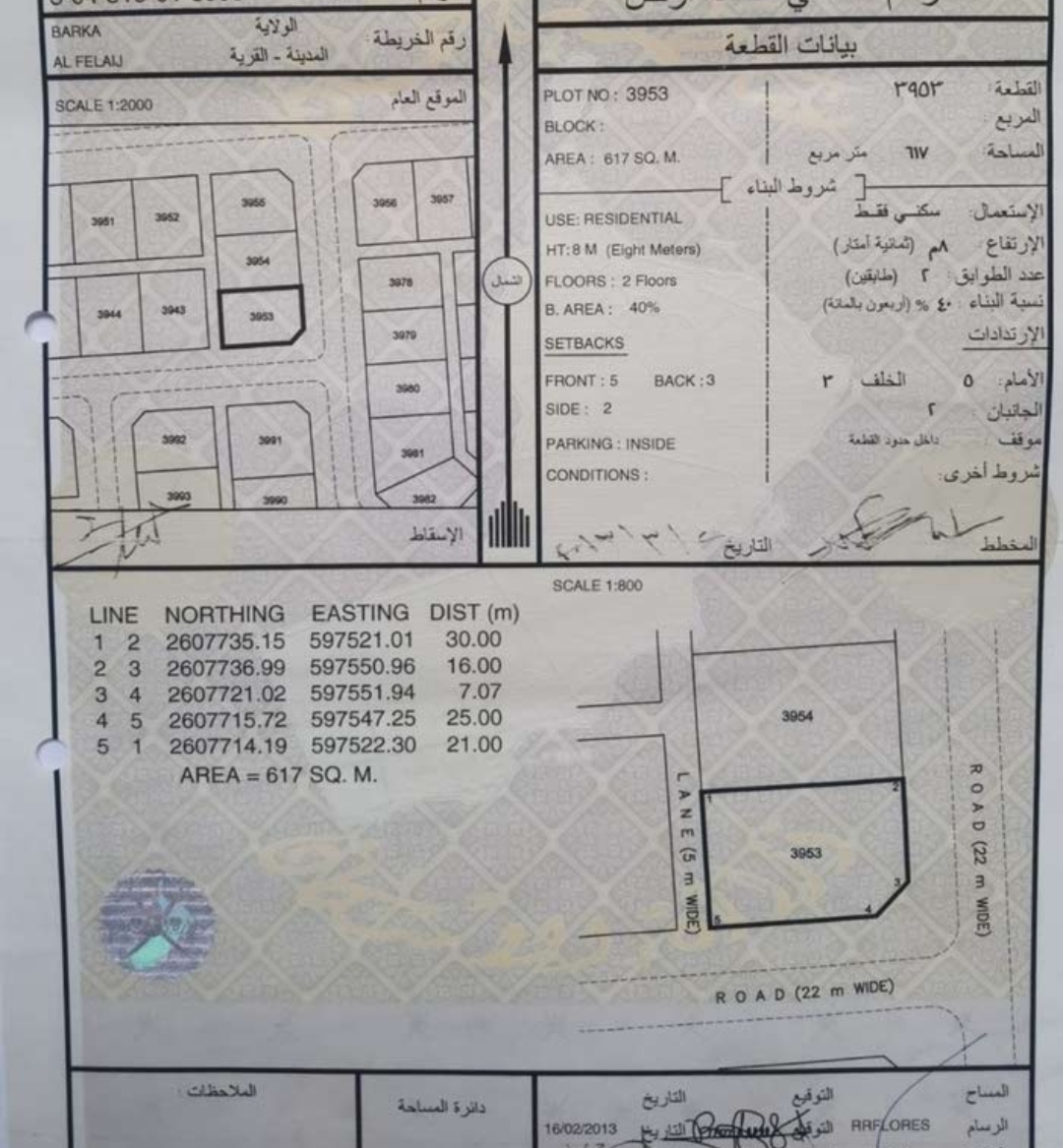 رقم الأرض : 3953