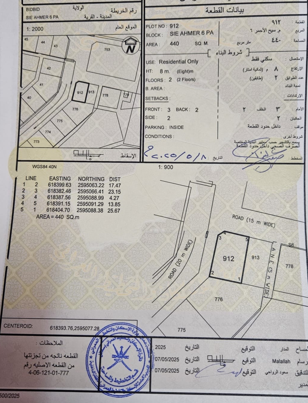رقم الأرض : 912