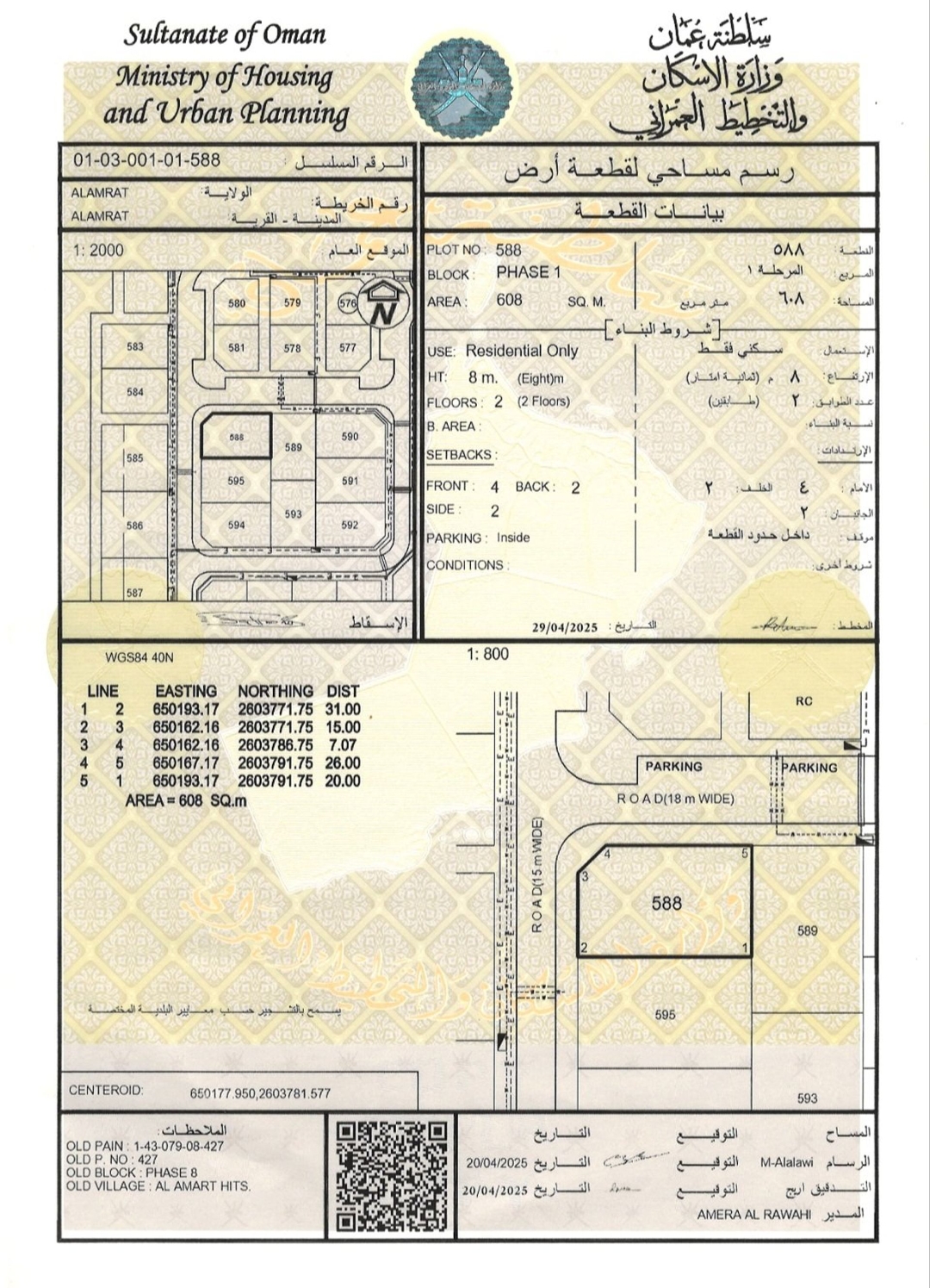 كورنر مقابل المنطقة التجارية فرصة مميزة أرض للبيع بمرتفعات العامرات