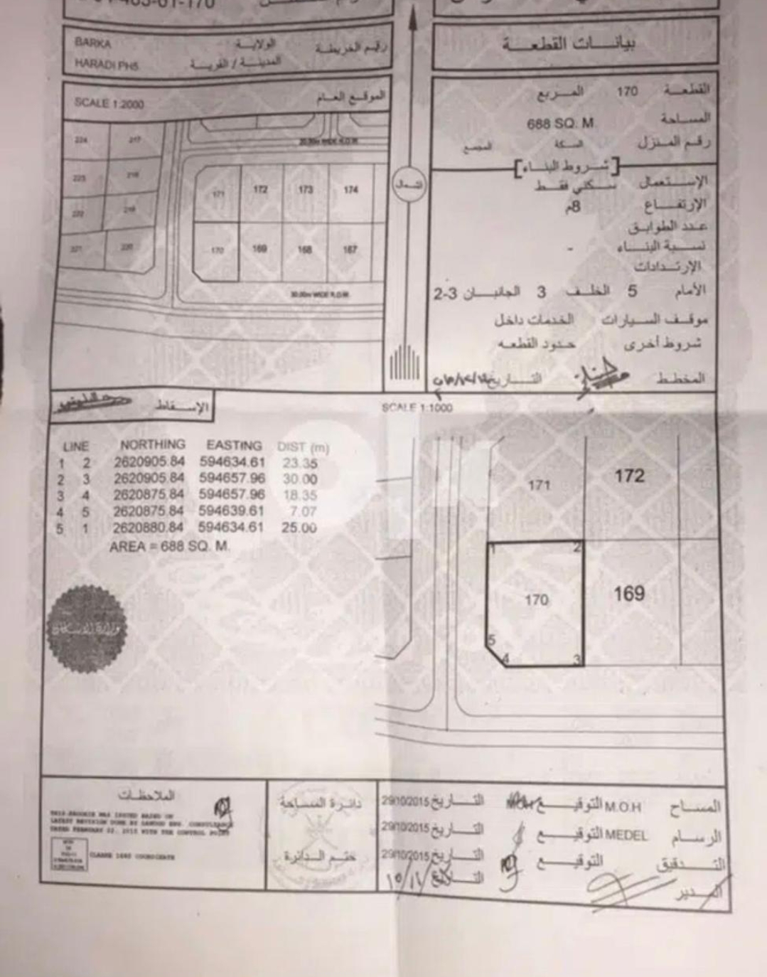 مميزات الأرض و الخدمات: في حي متكامل وقائم بكل الخدمات الأساسية ، واجهه عرضية ، بالقرب من محطة نفط عمان ، مناسبة للإستثمار او بناء توين فيلا منفصلتين .