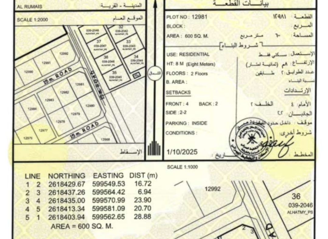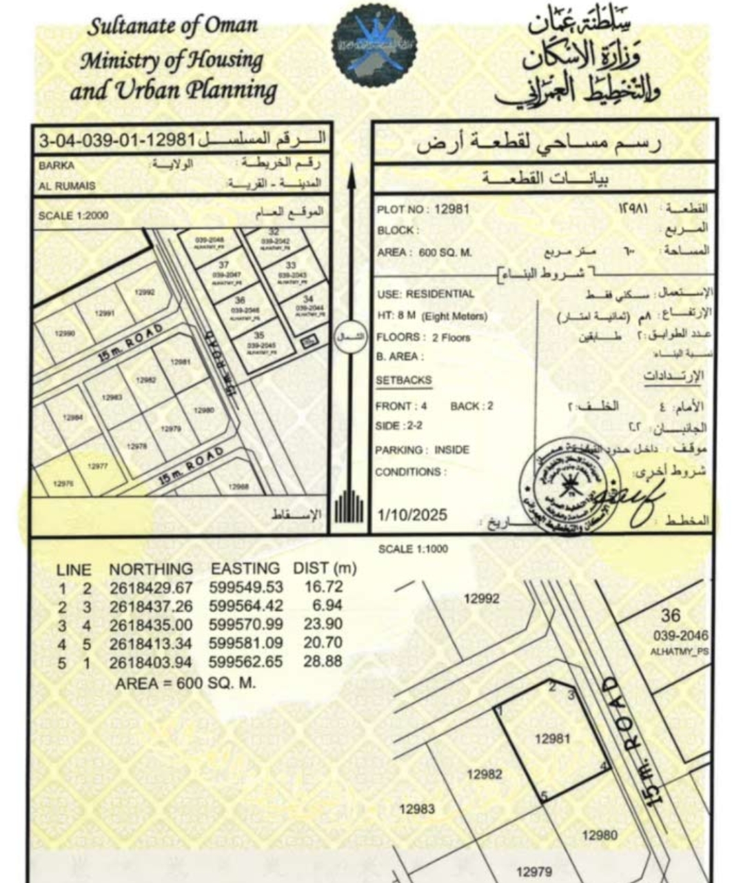 كورنر 200متر فقط عن شارع السلطان قابوس أرض للبيع بالرميس بركاء