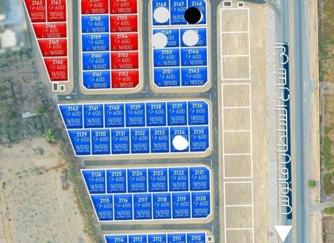مميزات الأرض و الخدمات: الخط الاول من الشارع الرابط بين الشارع العام والشارع الساحلي ، يبعد ١ كيلومتر عن طريق السلطان قابوس (الطريق الرئيسي)