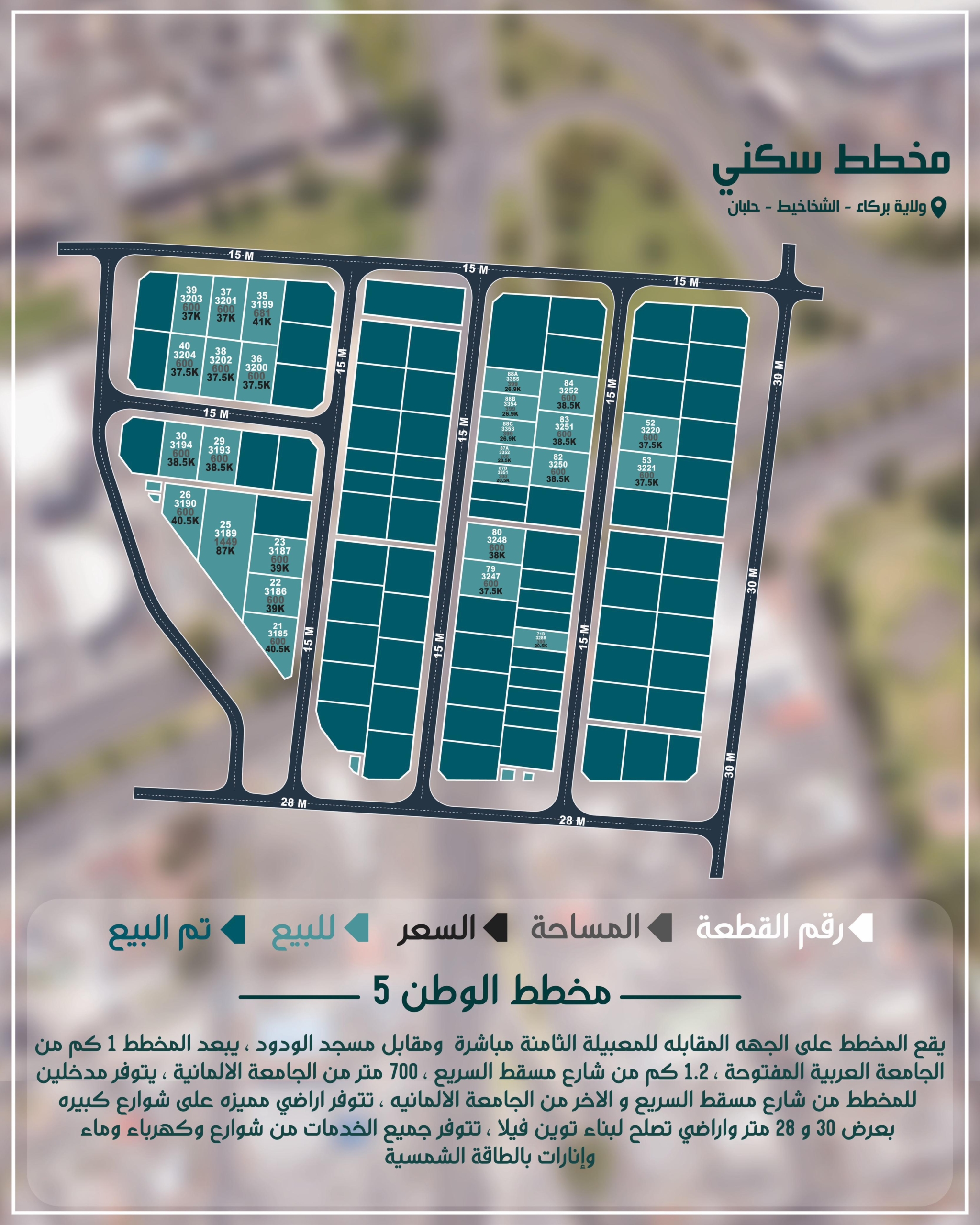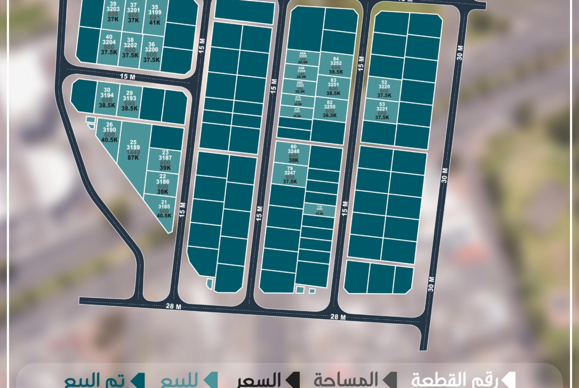 – توفر اراضي على شوارع عريضه 30و28 متر.