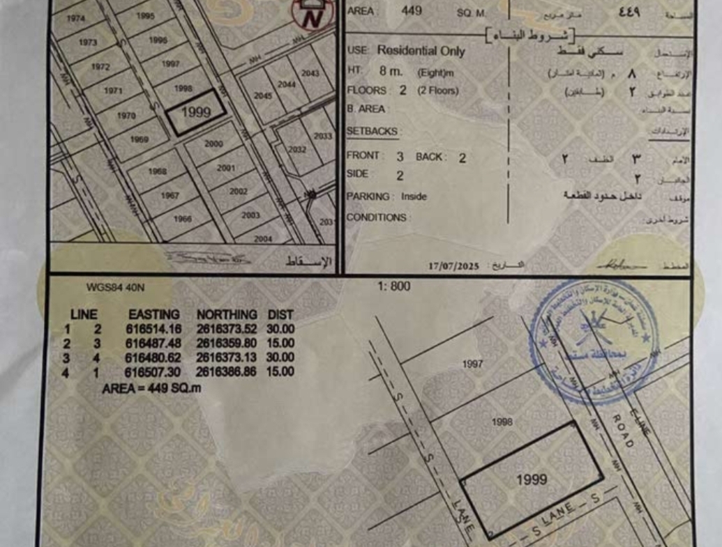 مميزات الأرض و الخدمات: على شارع وسكتين ، خلف محطة شل ، قريبة من مسقط مول ، موقع ممتاز بكل الخدمات.