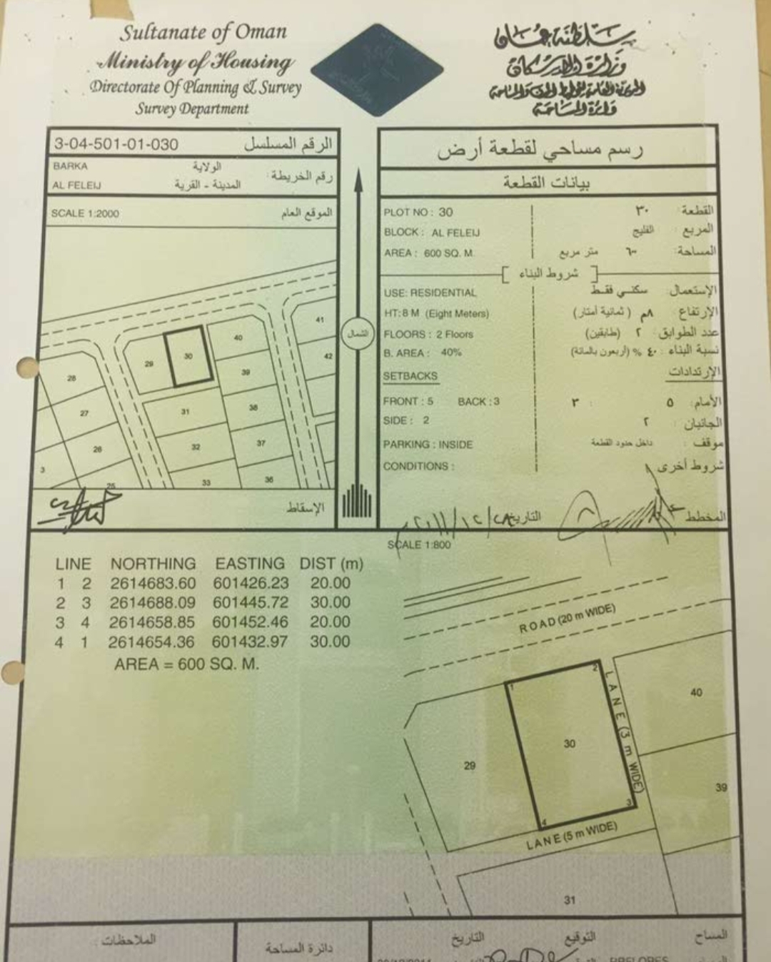 مفتوحة 3جهات وموقع هادئ أرض للبيع بحي الطيبين الفليج بركاء