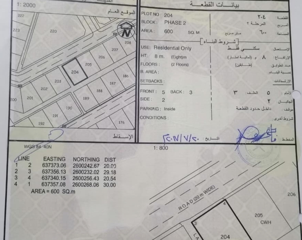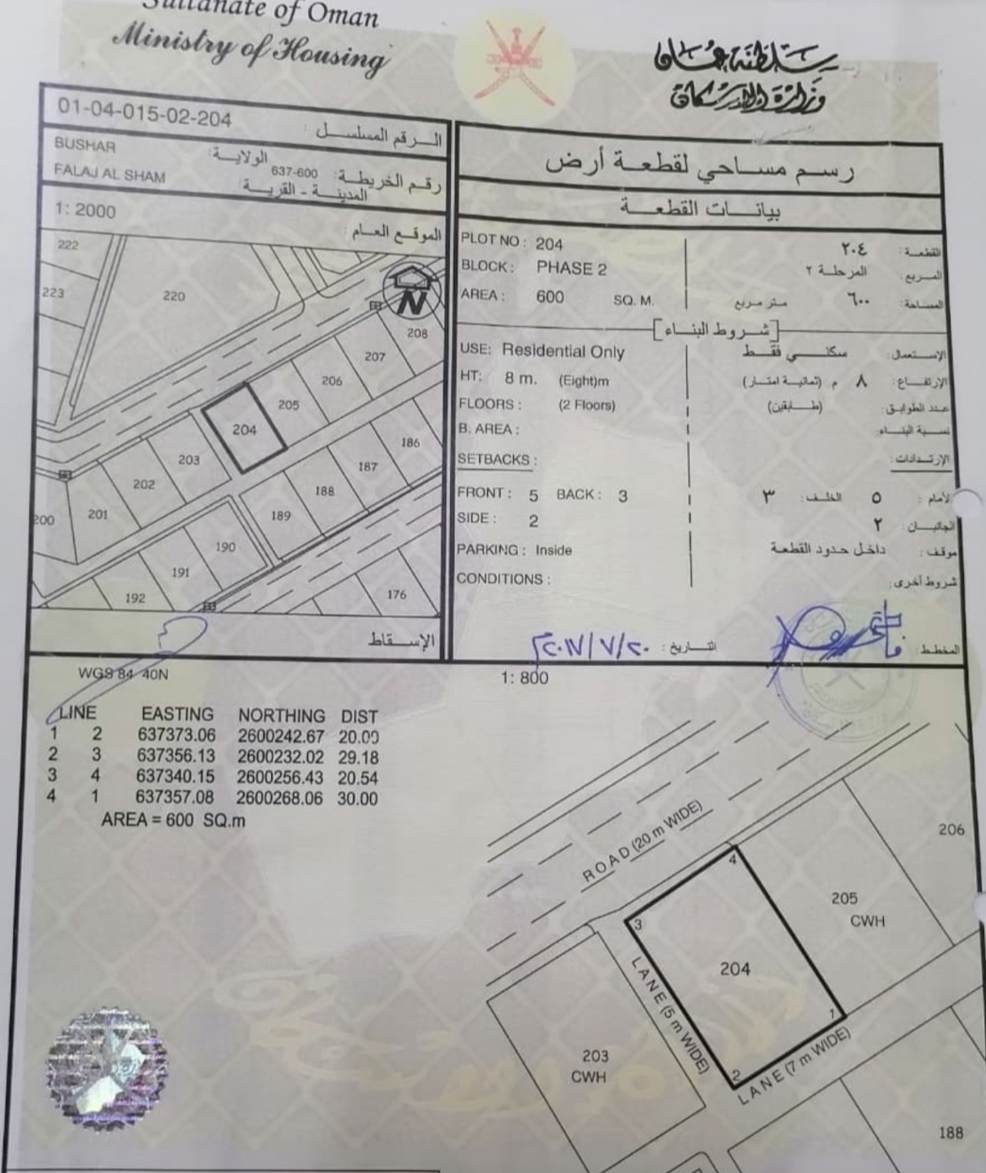 رقم الأرض : 204