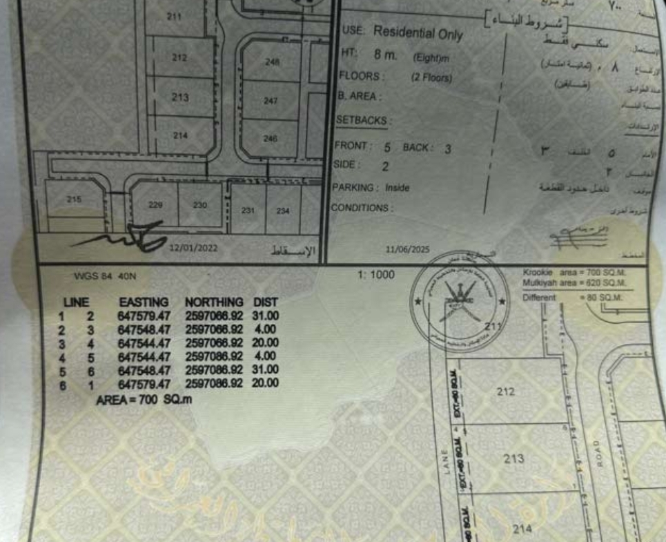 مساحة الأرض : 700 متر مربع