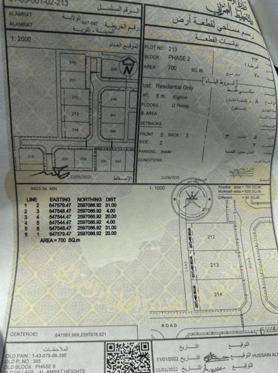رقم الأرض : 213