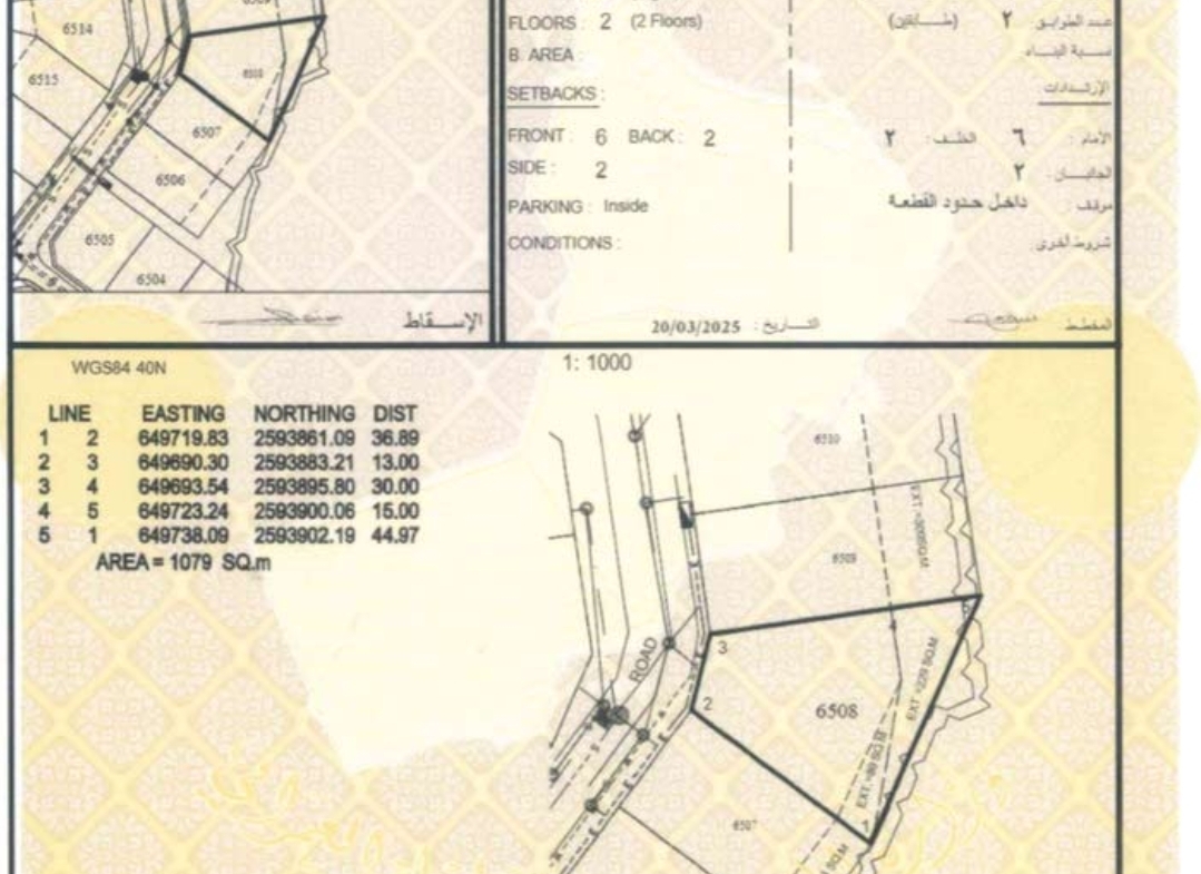 مميزات الأرض والخدمات: بالقرب من مسجد الرسالة ، واجهه 13 متر ، مستوية وجاهزة للبناء ، على شارع مرصوف ، خلف فضاء.