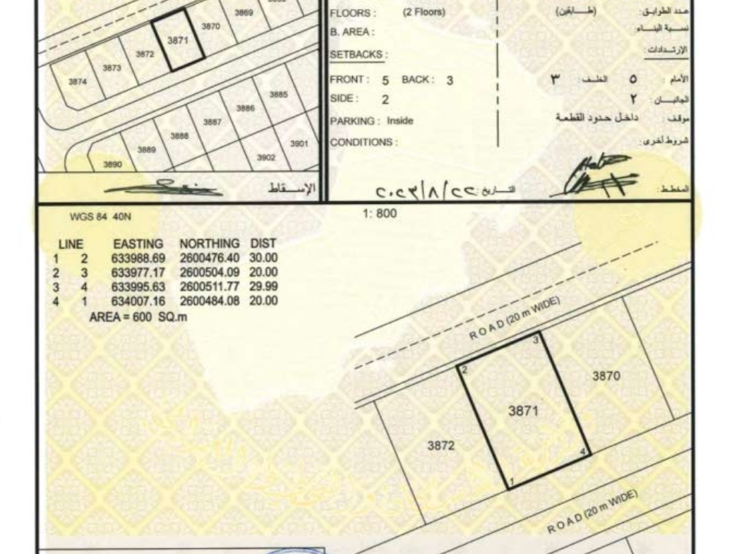 مميزات الأرض والخدمات: على شارعين 20 متر ، مناسبة لبناء توين فيلا بواجهتين مختلفتين ، مستوية وجاهزة للبناء.