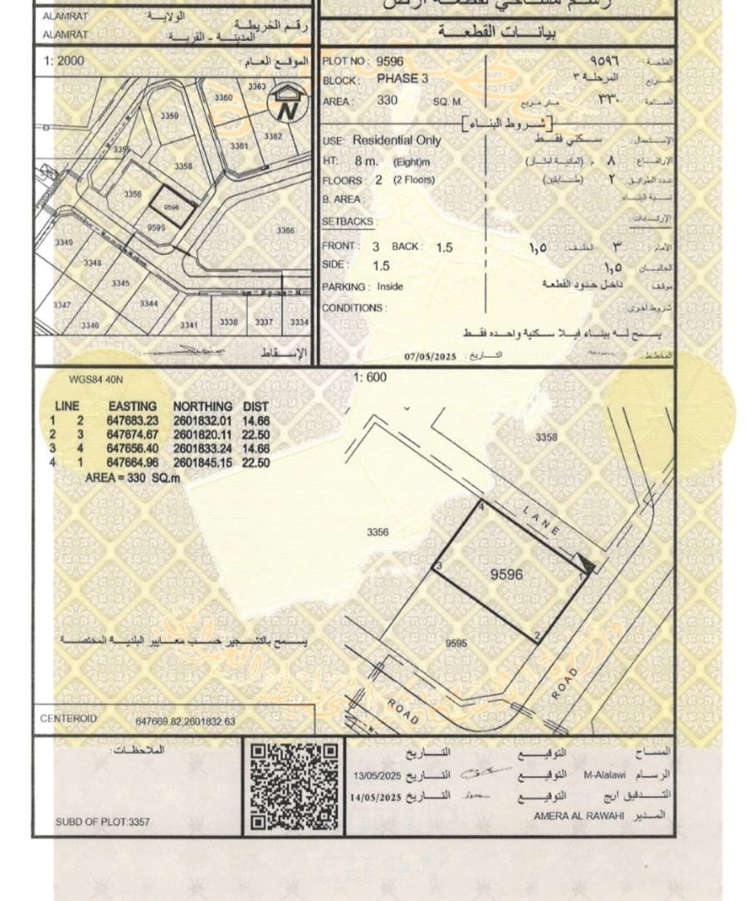 10دقائق فقط عن بوشر أرض زاوية للبيع بمرتفعات العامرات